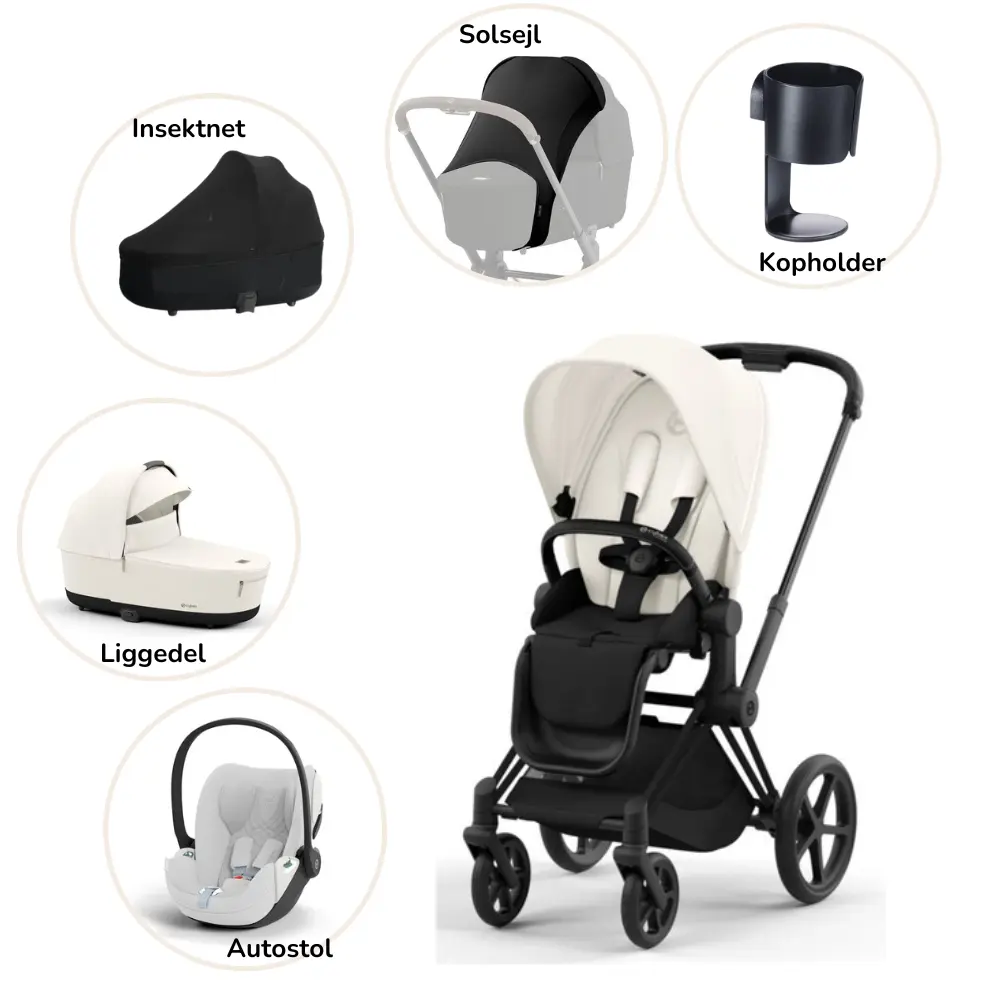 Vi har fundet Priam Pakke Off White Matt Black Plus fra Cybex hos babysam i kategorien . Priam klapvogn: Den ultimative luksus klapvogn til forældre, der kun forventer det bedste. Priam sætter nye standarder for kvalitet, manøvredygtighed og ren, luksuriøs komfort. Tidløse designelementer er parret med geniale funktioner, der opfylder foræld